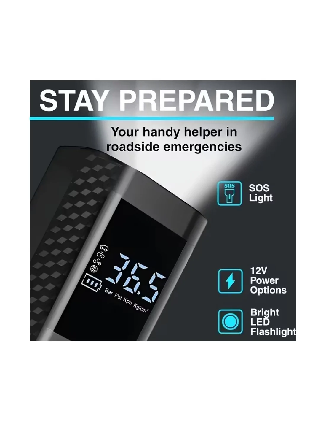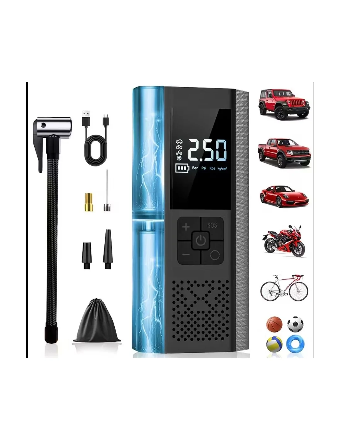 Благодаря встроенной литиевой батарее 18650 ёмкостью 3000 мАч и питанию от USB, компрессор готов к работе в любое время и не требует подключения к сети. Цифровой манометр отображает точное давление, LED-подсветка позволяет использовать устройство ночью или в дороге.