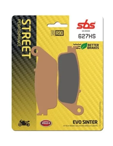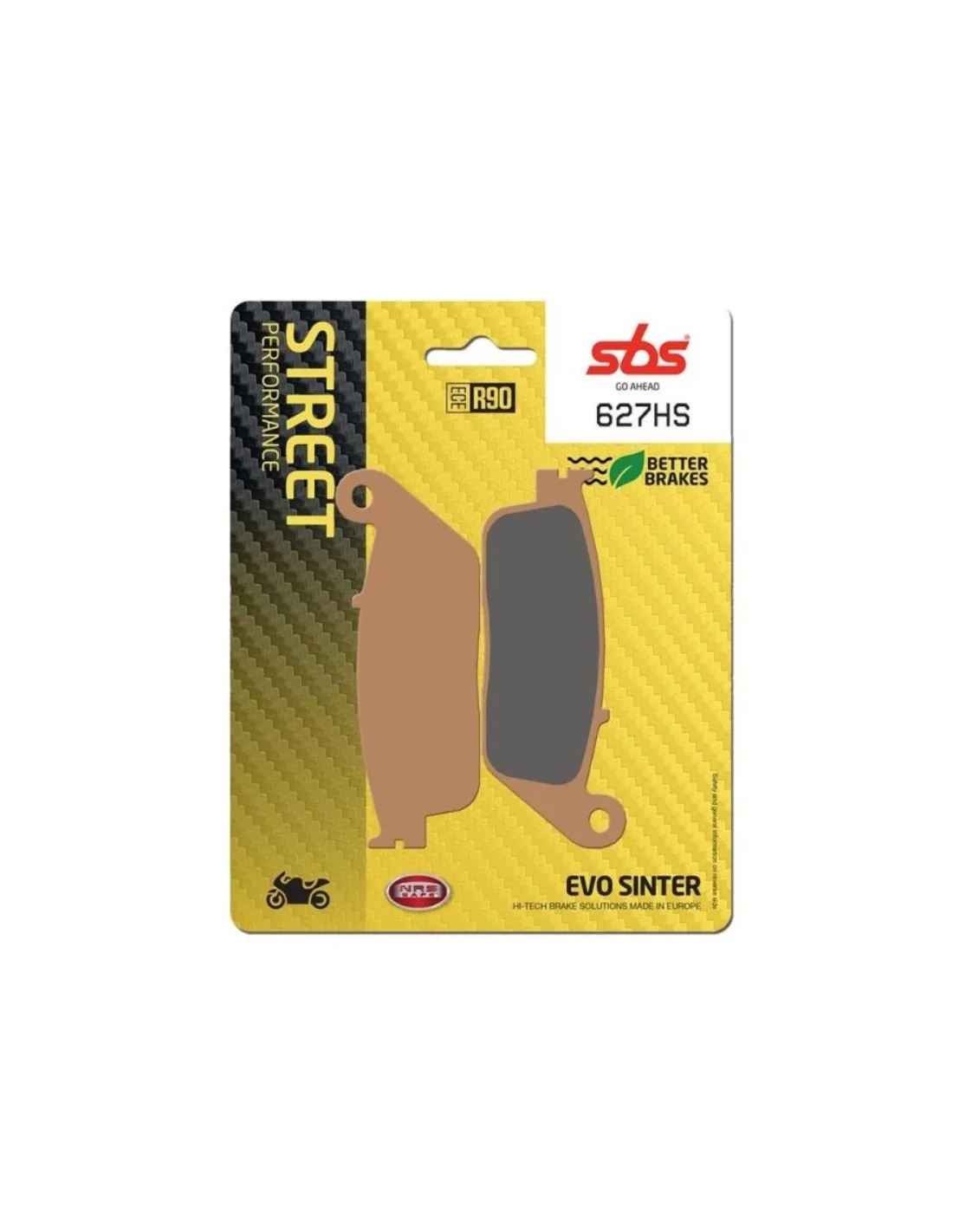 SBS 627HS — високоякісні дорожні колодки серії Road HS з компаундом sintered (спечені) для мотоциклів і максискутерів. Забезпечують стабільний «хват» із перших метрів, передбачувану модуляцію та ефективну роботу в дощ і за високих температур. Постачаються комплектом на один супорт (2 колодки в к-кт).