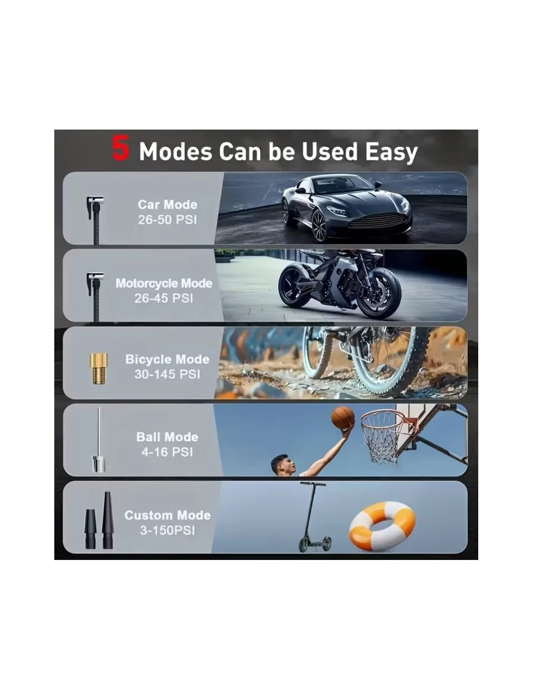 Завдяки вбудованому літієвому акумулятору 18650 ємністю 3000 мА·год і живленню від USB пристрій готовий до роботи будь-де, без потреби в електромережі. Цифровий манометр показує точний тиск, а LED-підсвітка дозволяє використовувати насос у темну пору доби.
