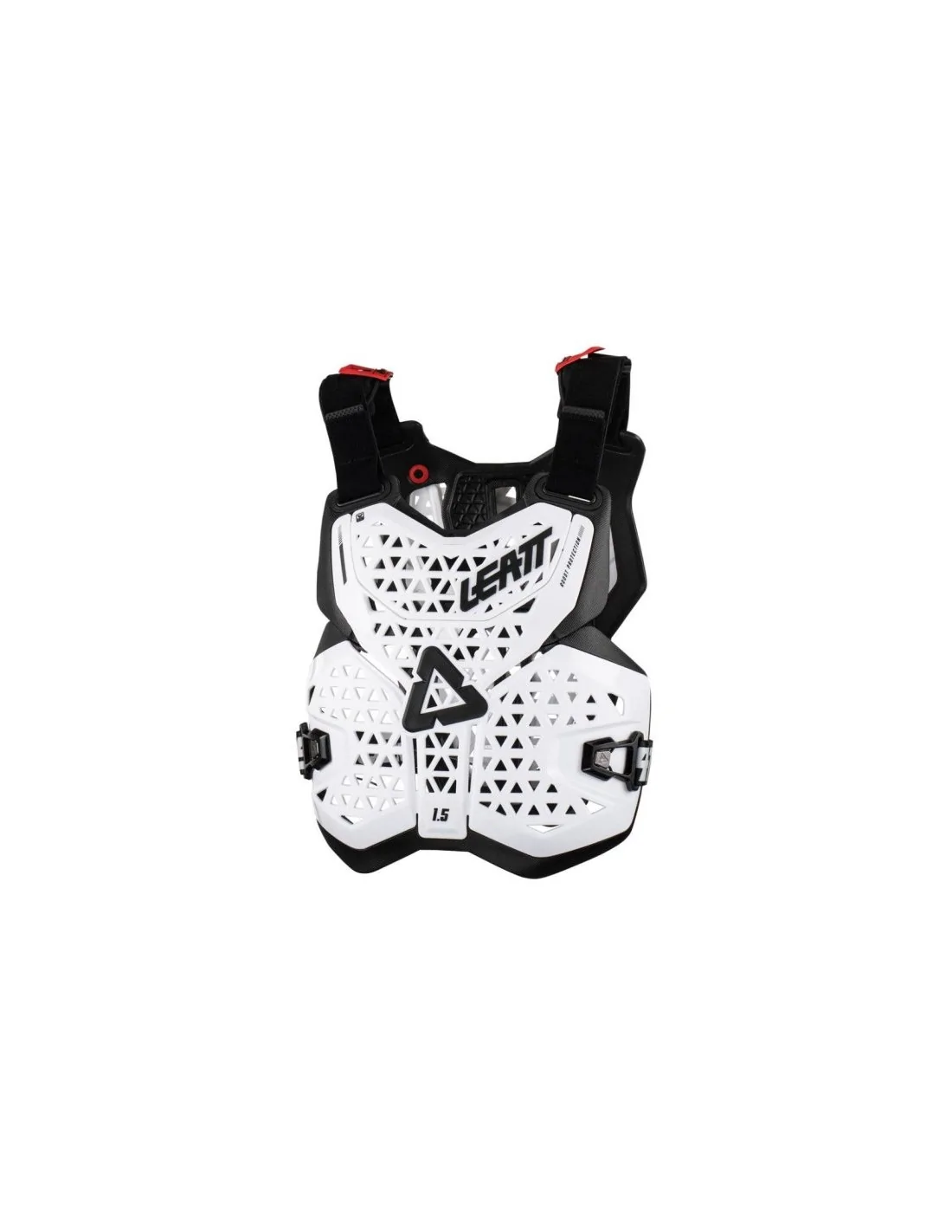 LEATT 1.5 Chest Protector білого кольору — легкий панцир для захисту грудей і спини, створений для мотокросу, ендуро та активних тренувань. Модель розрахована на райдерів, яким важливі зручна посадка, вентиляція та свобода рухів без зайвої ваги й громіздкості екіпірування.